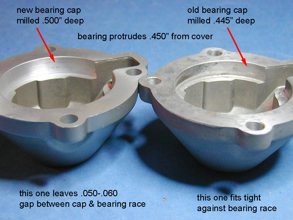 Well, it's been milled too deep, and would not clamp the bearing tight to the rear cover, but left it loose with fore/aft end play. NOT what it's supposed to do!